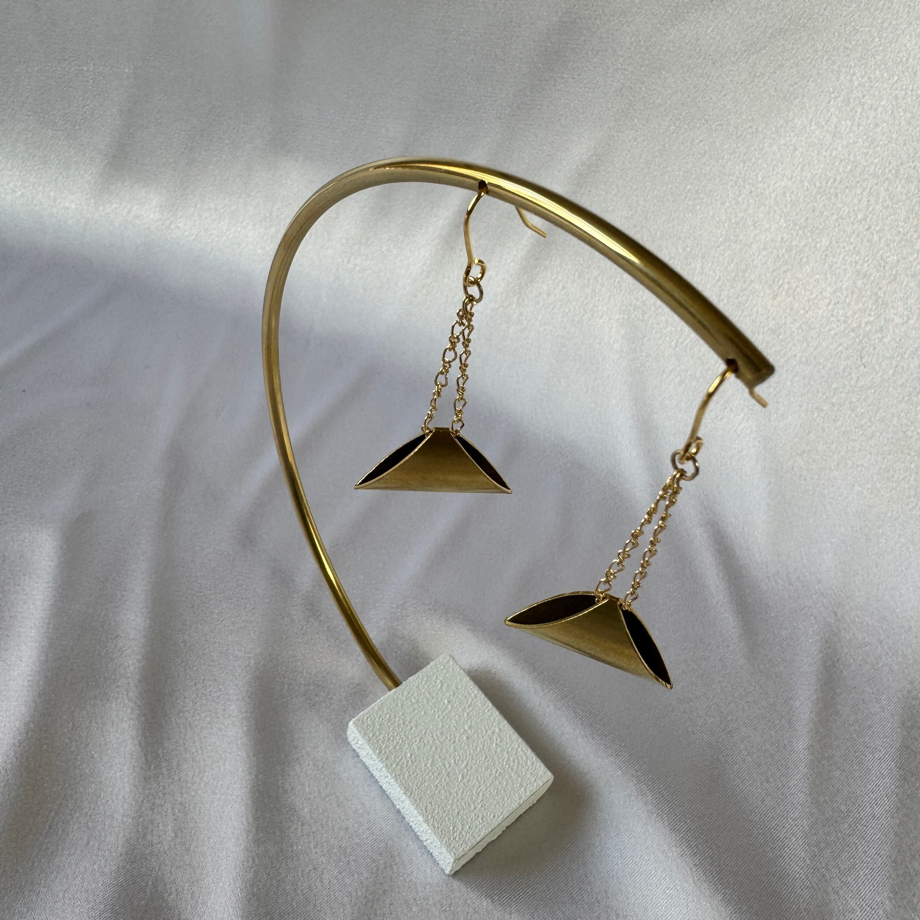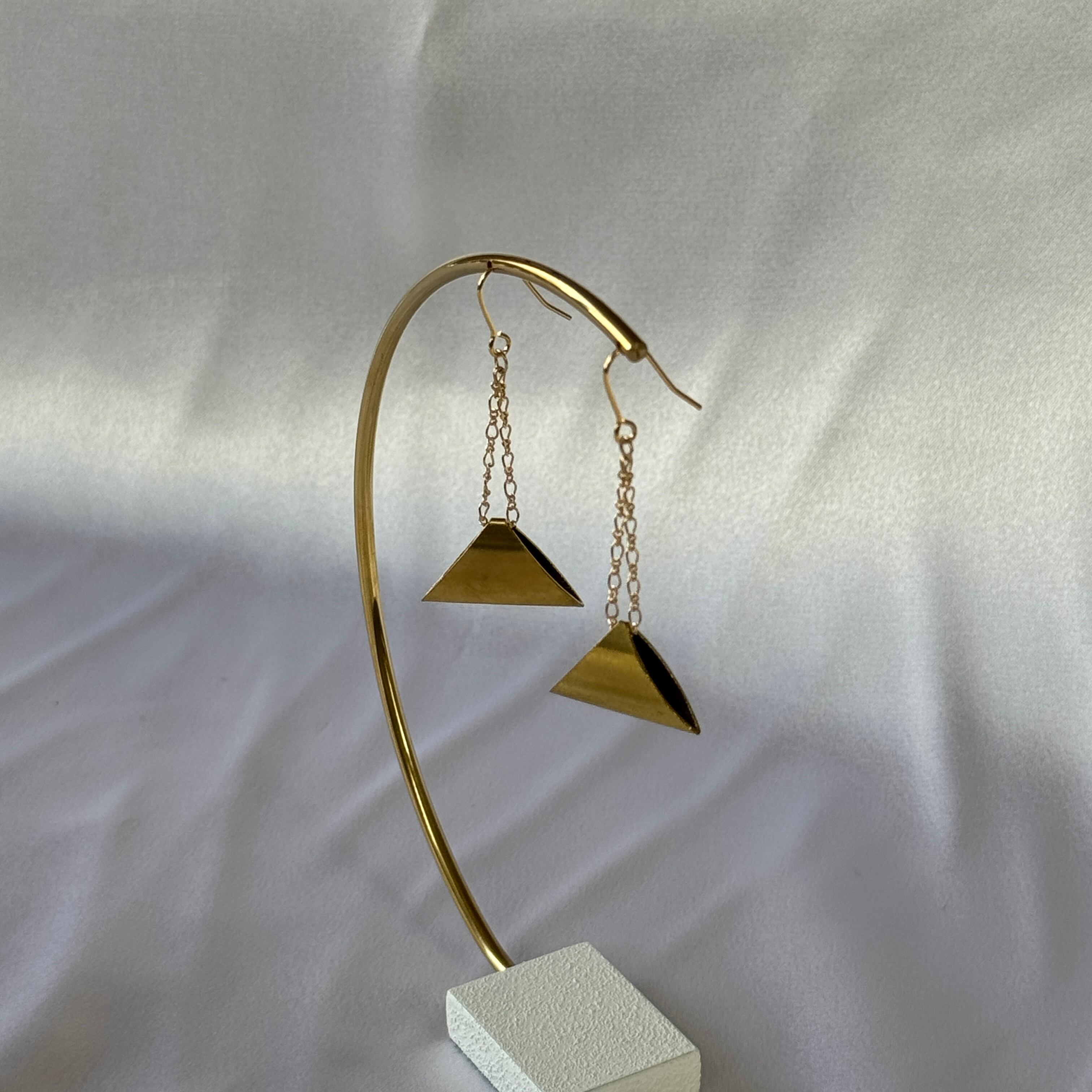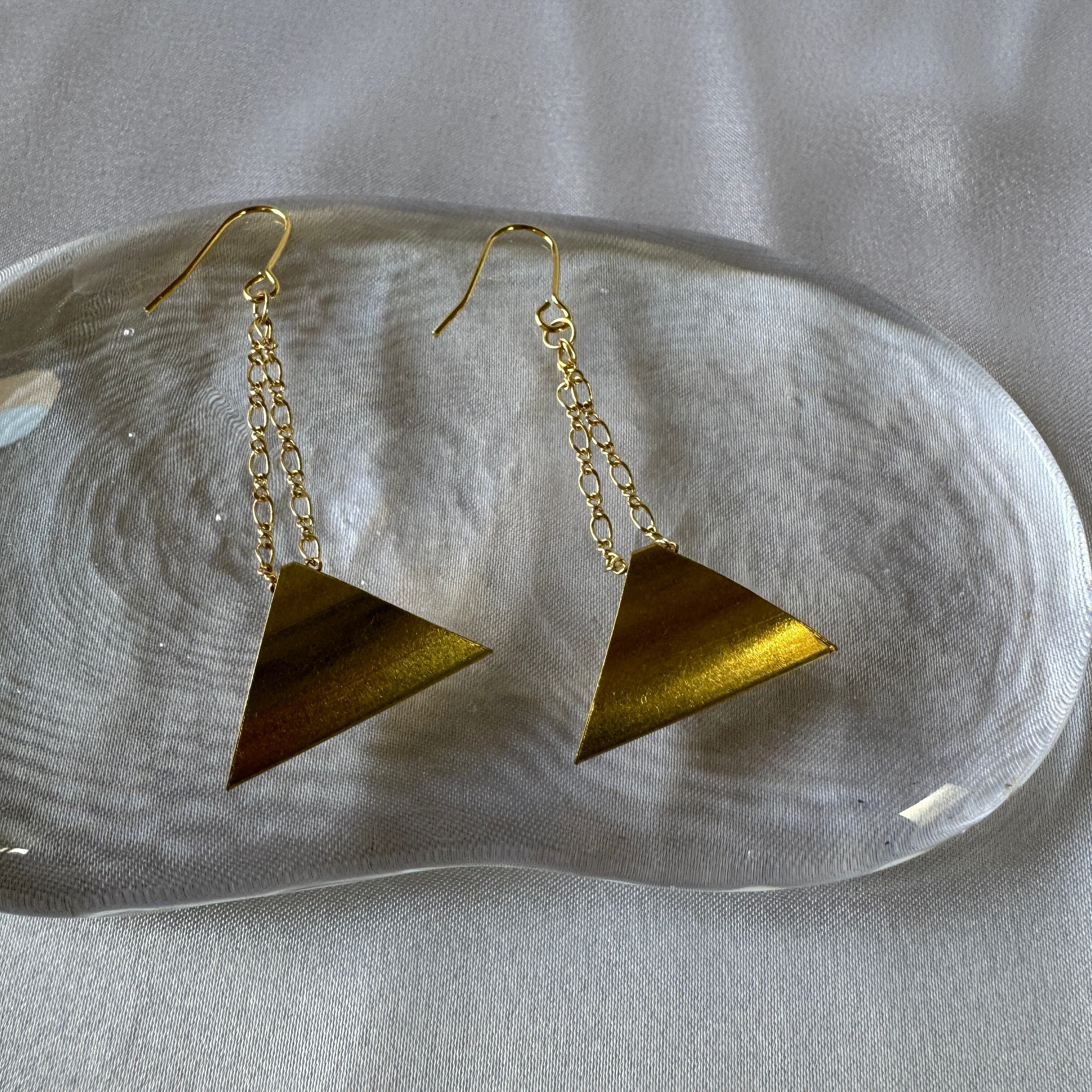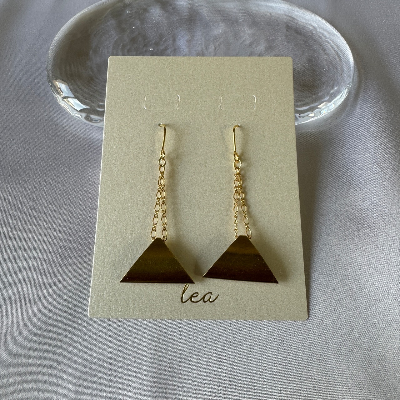 シャープな三角形のモチーフと繊細なチェーンが組み合わさり、シンプルで洗練されたデザインに仕上げました。