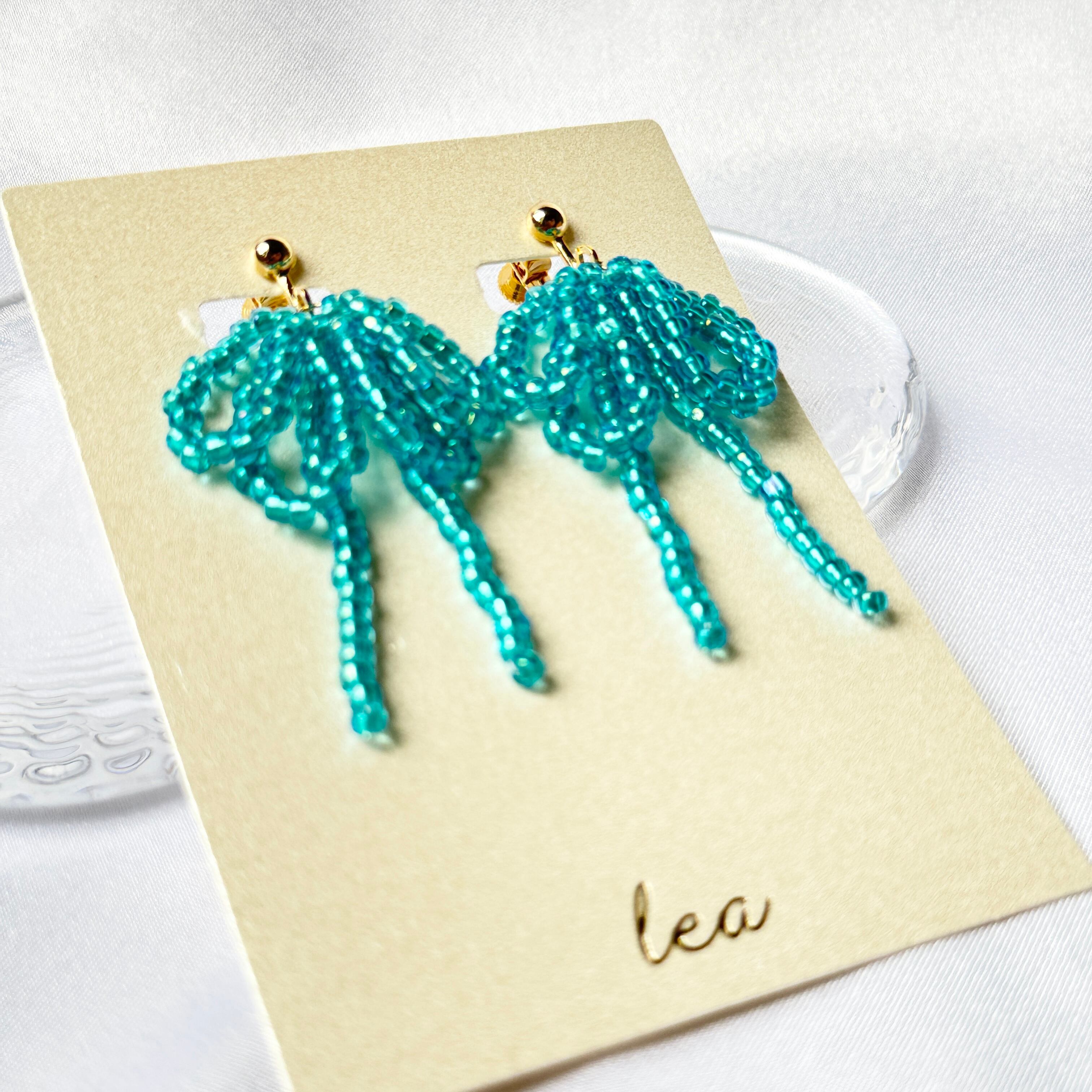 鮮やかなターコイズブルーのビーズリボンは、どんなスタイルにも華やかさと個性を加えてくれます。