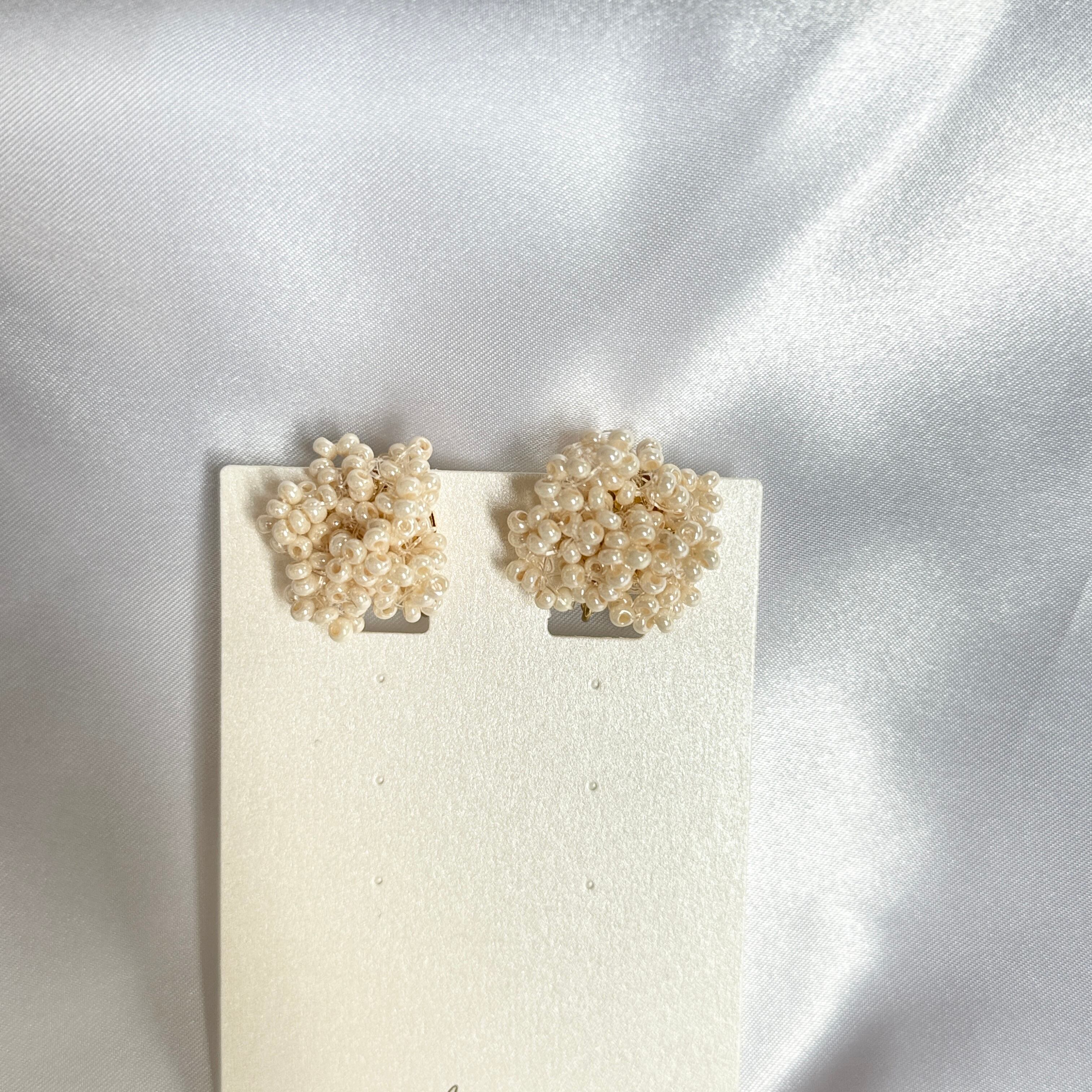 繊細なビーズを丁寧に編み上げ、花が咲く瞬間の美しさを表現したピアス。