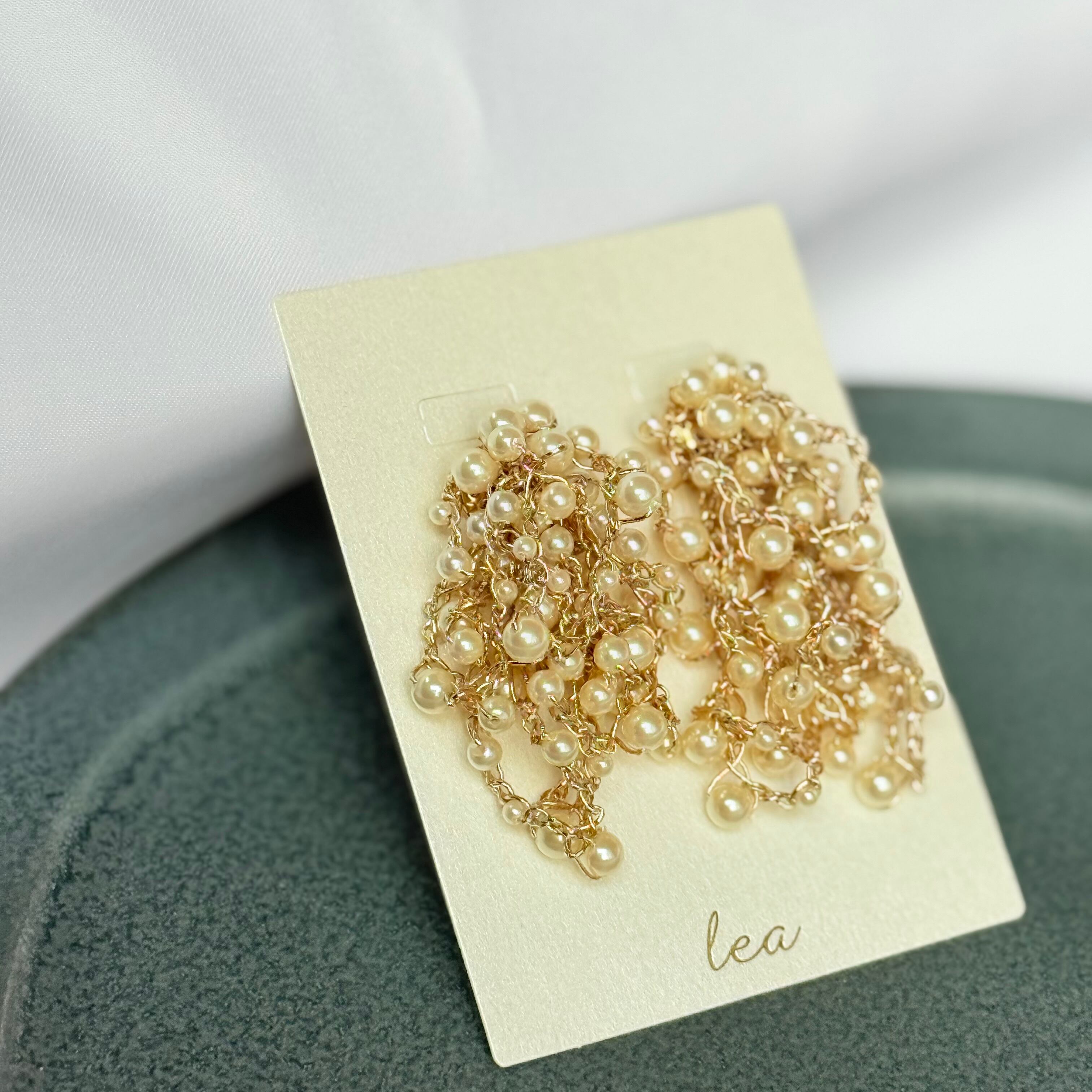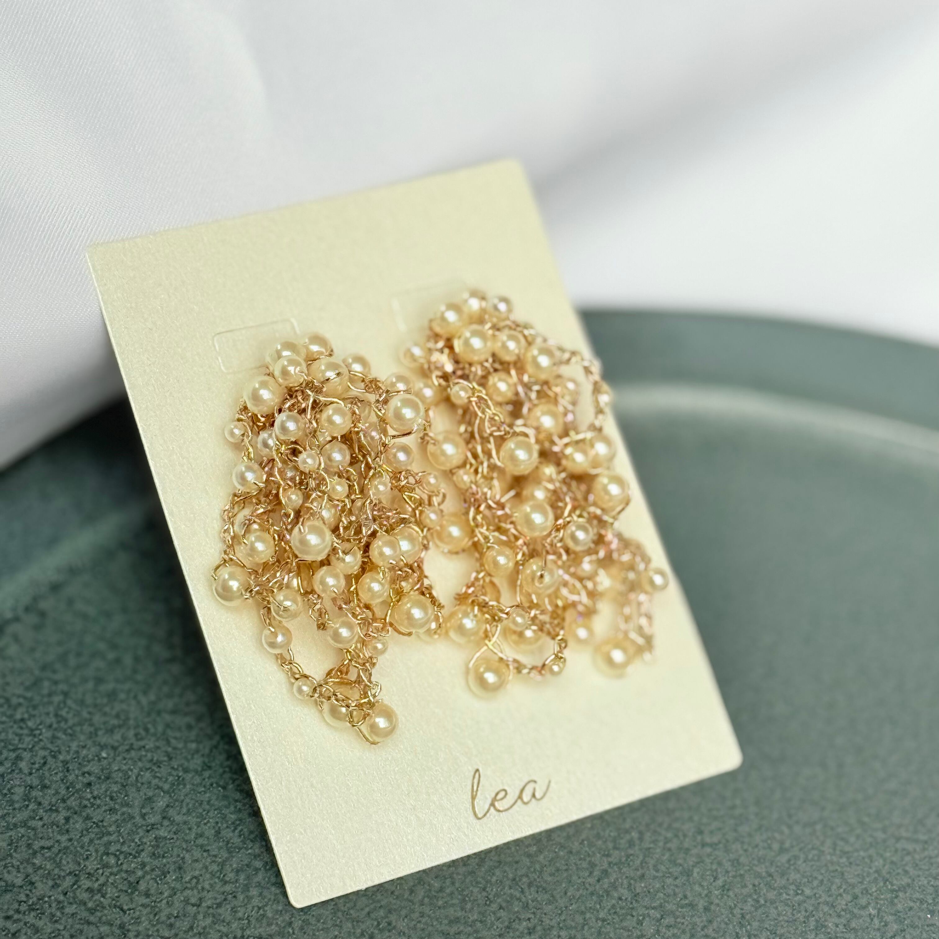 優美なパールビーズを贅沢に使用し、まるで花が bloom(開花)するかのような華やかさを演出したイヤリング。
