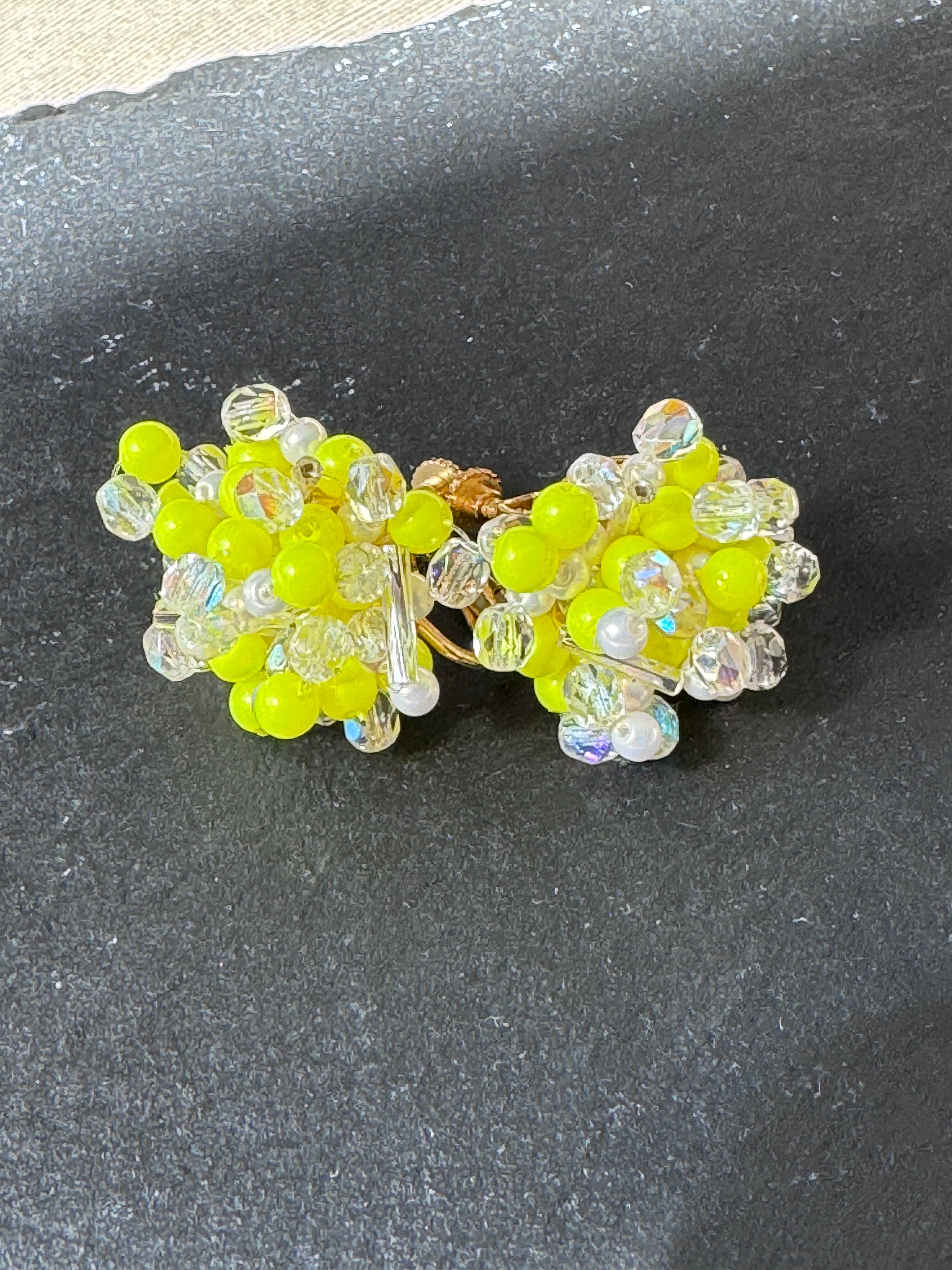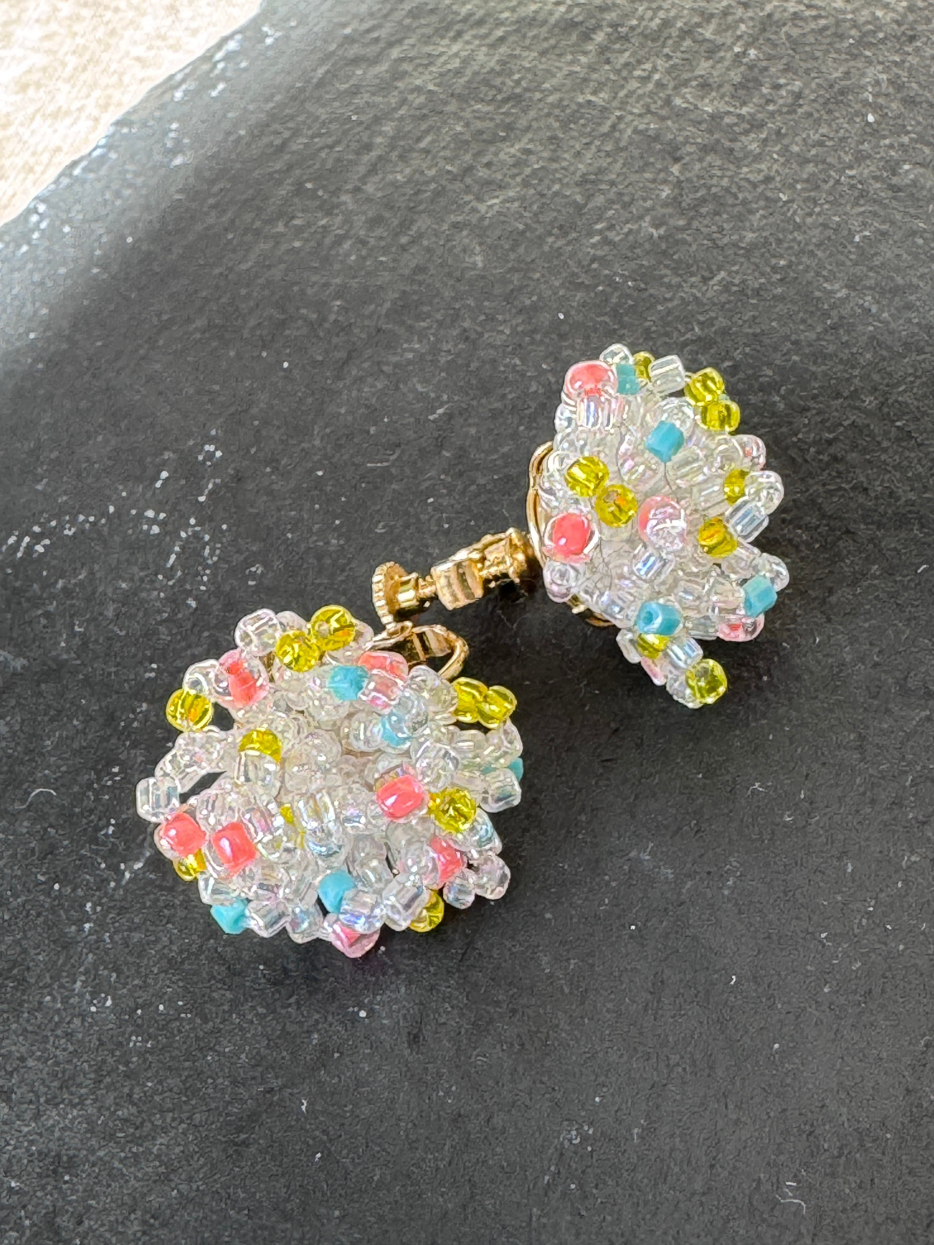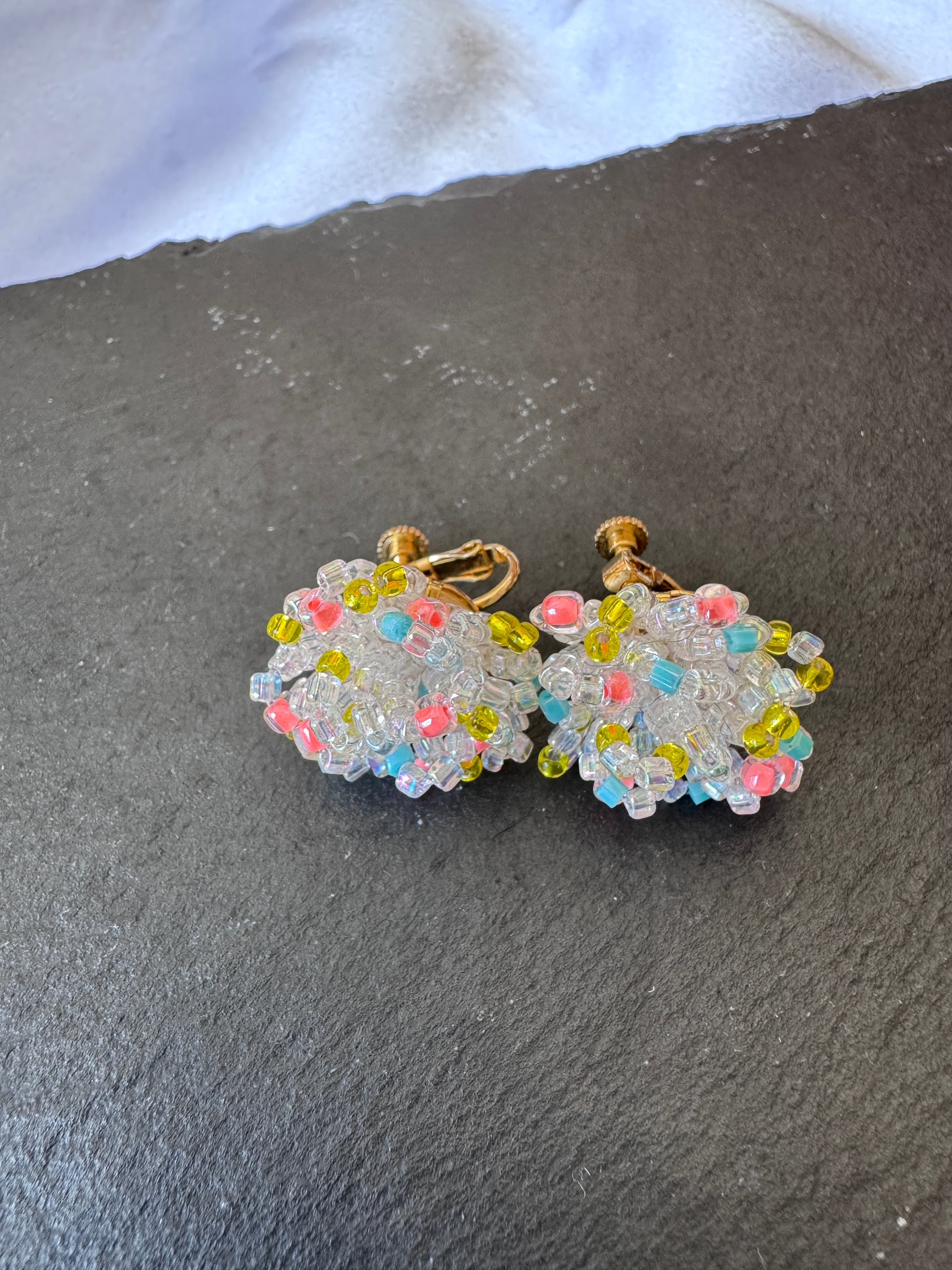 クリアビーズを基調としているので、多色使いながらも透明感があり、どんな色の服にもすっと馴染みます。